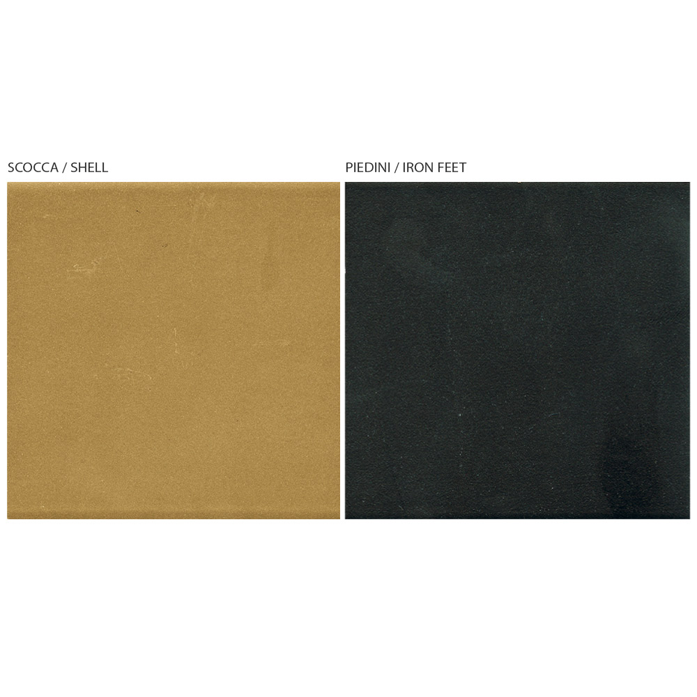 schaal en ijzeren poten in twee verschillende afwerkingen, interne planken van