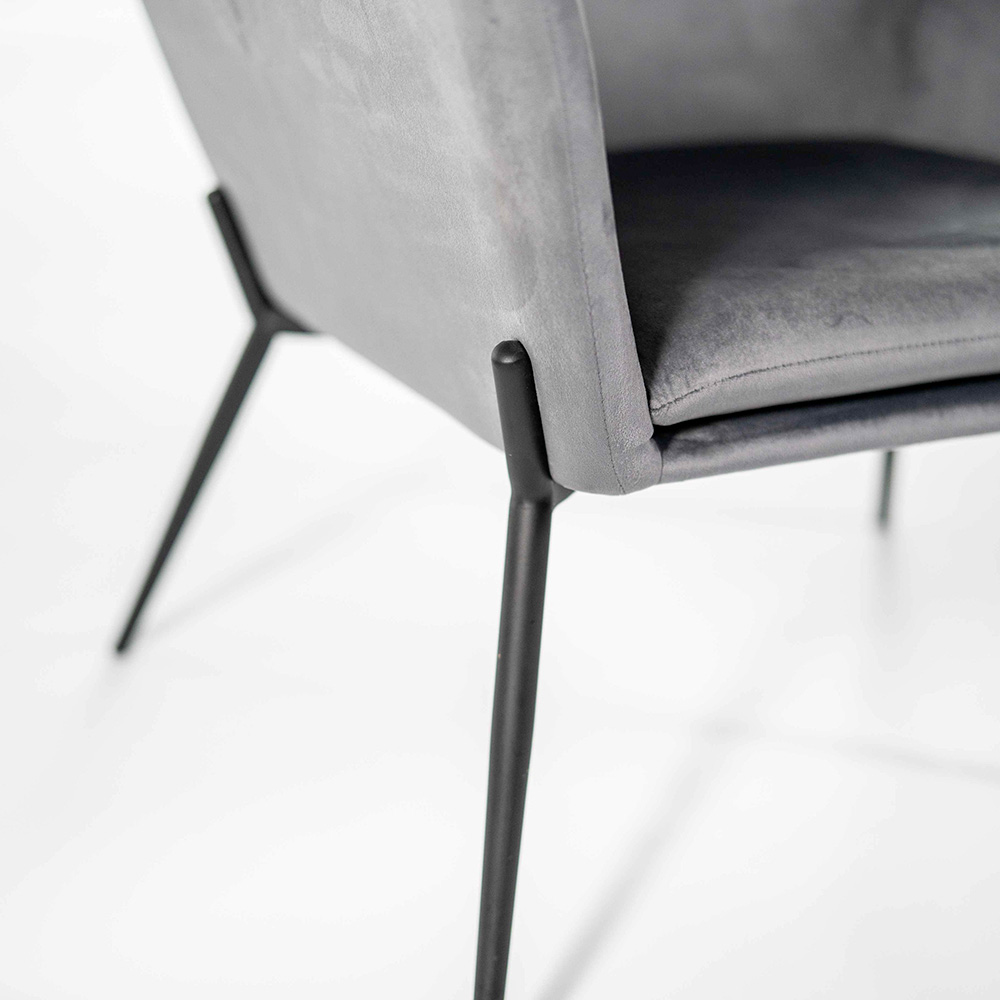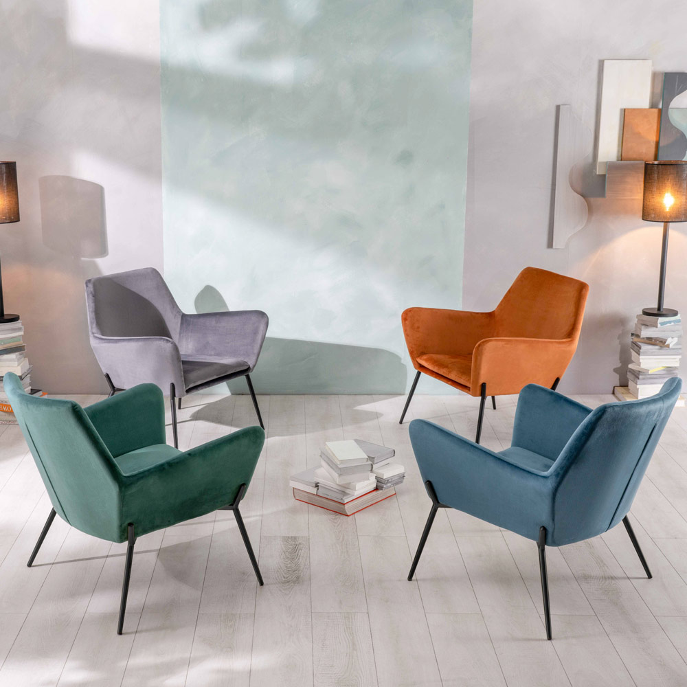 Deze fauteuil, een uitdrukking van elegantie en verfijning, is ontworpen om een sierlijk tintje aan de woonruimte te geven, maar leent zich voor elke inrichtingsoplossing. Het zachte fluweel omhult de zitting, waardoor deze uiterst aangenaam aanvoelt. De structuur eindigt met poten met een slank ontwerp in elegant metaal. Het is een meubelaccessoire dat ruimtes uniek kan maken en het middelpunt van elke moderne en eigentijdse woonkamer kan worden.