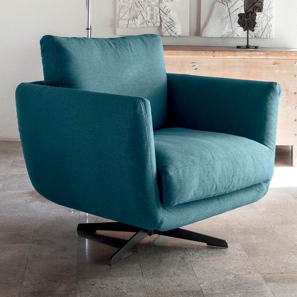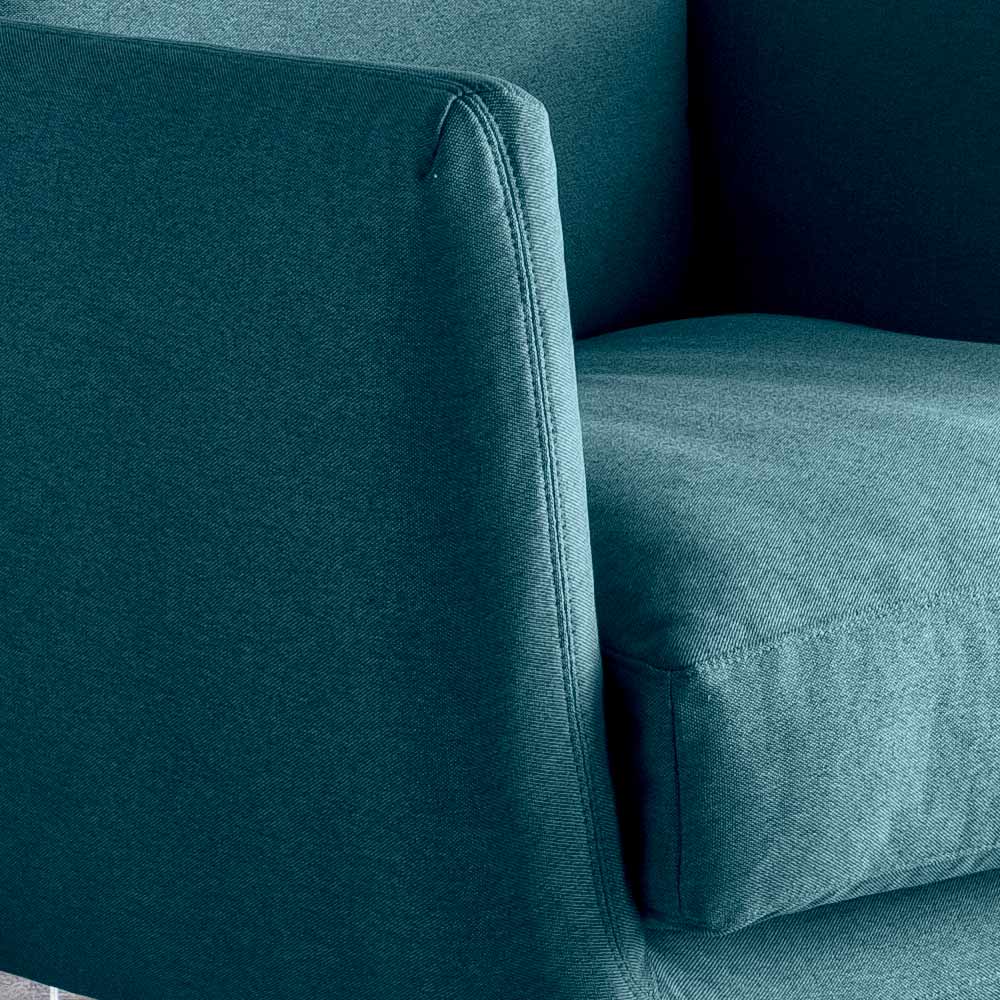antracietkleurig geverfd metaal. De fauteuil vertegenwoordigt een harmonieuze fusie van comfort en moderne stijl. Het elegante ontwerp met zachte en ronde lijnen roept een gevoel van gezelligheid op, terwijl de stevige structuur duurzaamheid in de loop van de tijd garandeert. De hoogwaardige stoffen bekleding belooft samen met de grote en comfortabele kussens een ontspannende zitervaring. De dunne en geometrische poten voegen een verfijnde toets toe, waardoor de fauteuil een fascinerend stuk design is. Deze fauteuil is ideaal voor degenen die op zoek zijn naar een inrichtingsoplossing die moderne esthetiek en onberispelijk comfort combineert.