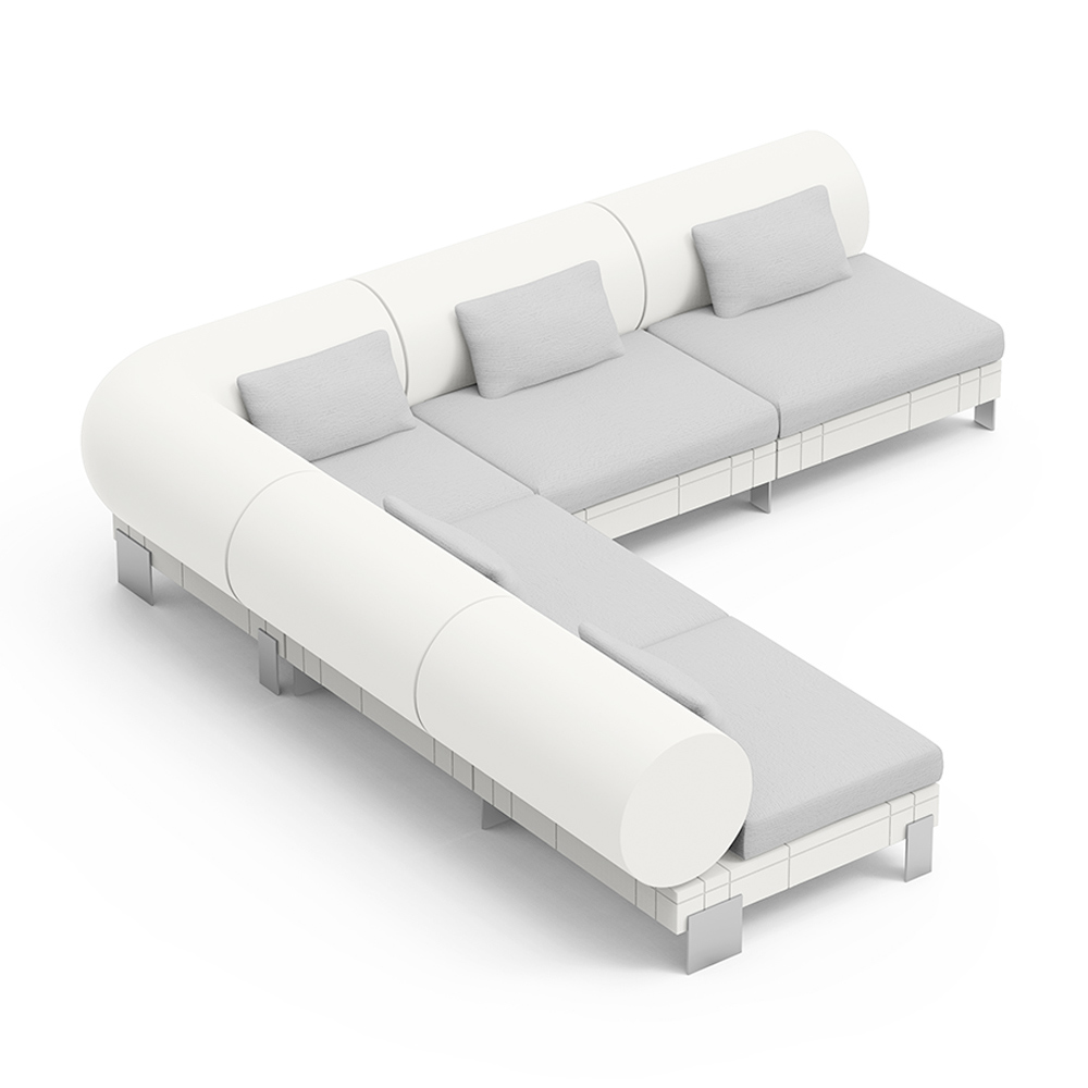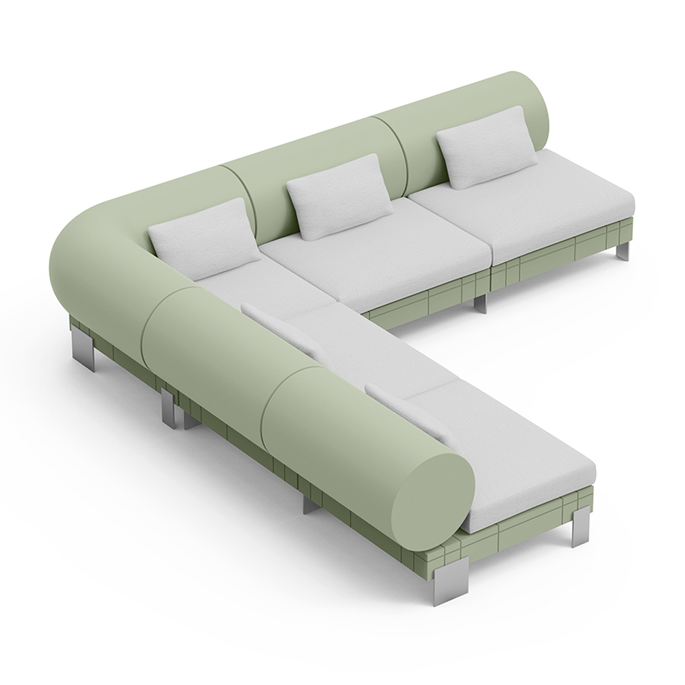 Deze eigentijdse bank combineert comfort en modern design in een opvallend meubelstuk. Gekenmerkt door strakke lijnen en een innovatieve vorm met zijdelingse cilinders, biedt de bank een vleugje unieke en functionele stijl . Het kleurenpalet introduceert een element van helderheid en frisheid in elke woonruimte.