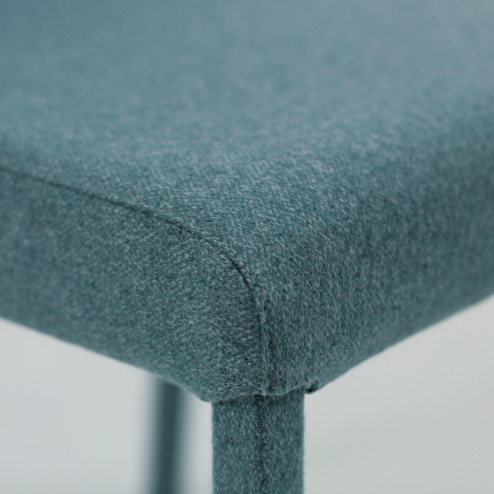 NB: de stoel is verkrijgbaar in verschillende stoffen en kleuren. Contrasterende stiksels zijn op aanvraag verkrijgbaar.