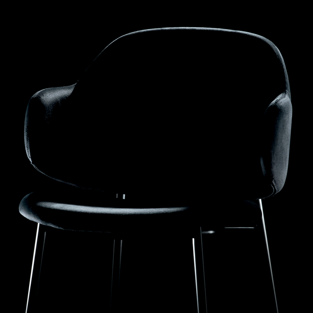 zwart gelakt staal. Deze stoel is het perfecte idee voor iedereen die binnenruimtes wil inrichten met een vleugje uniekheid en tijdloze elegantie. De