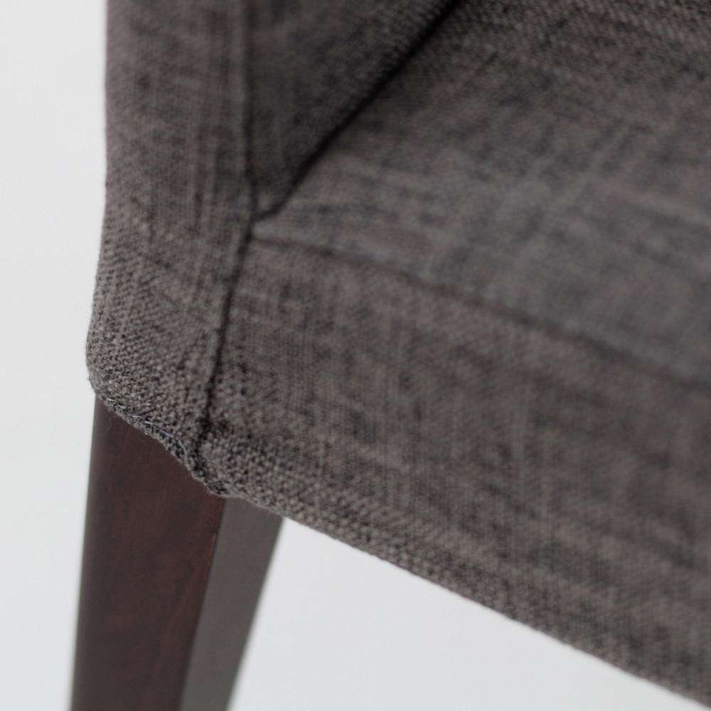 NB: de stoel is verkrijgbaar in verschillende stoffen en kleuren. Contrasterende stiksels zijn op aanvraag verkrijgbaar.