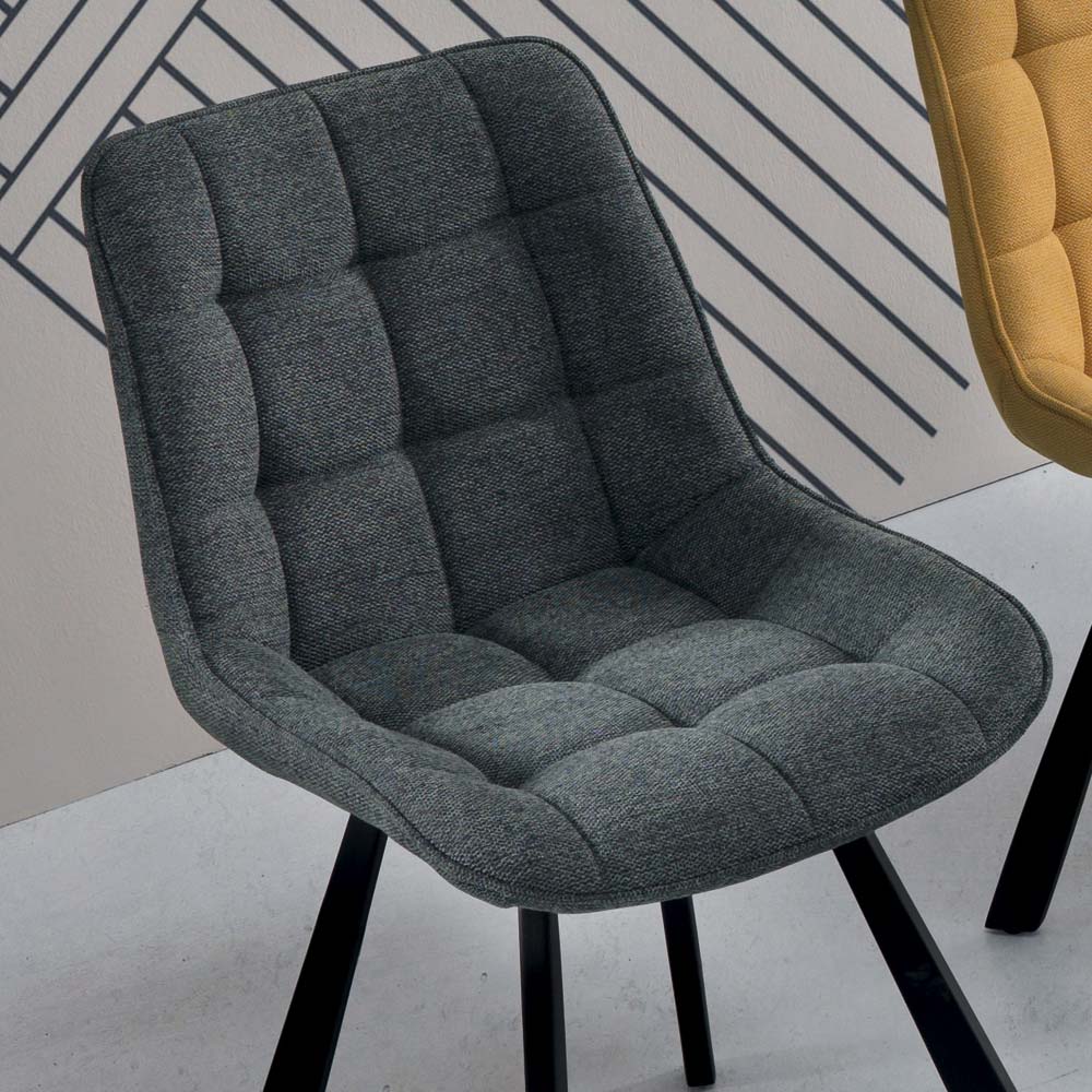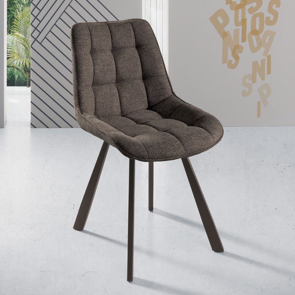 Gestoffeerde eetkamerstoel en 4-delige metalen structuur.