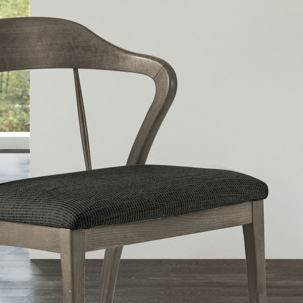 Houten stoel met dwarsstukken en gevoerde zitting van Made in Italy-stof
