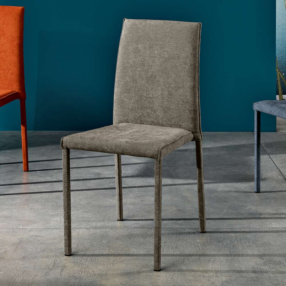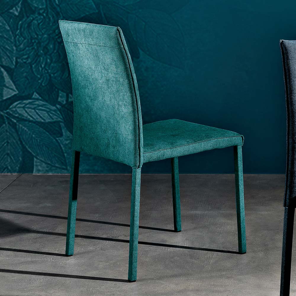 De hoge rugleuning en het slanke ontwerp garanderen steun en elegantie, terwijl de langwerpige poten de slankheid van het profiel benadrukken zonder aan stevigheid in te boeten. De afwerking van deze stoel vertegenwoordigt de perfecte combinatie van vakmanschap en innovatie die het Made in Italy- design kenmerkt.