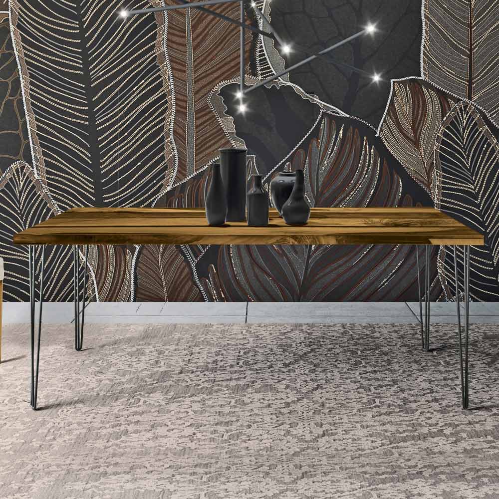 Vaste rechthoekige designtafel met blad van hout en hars Made in Italy