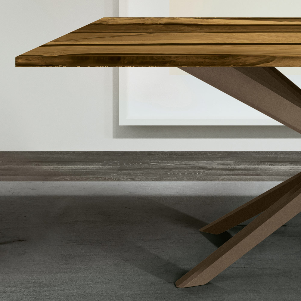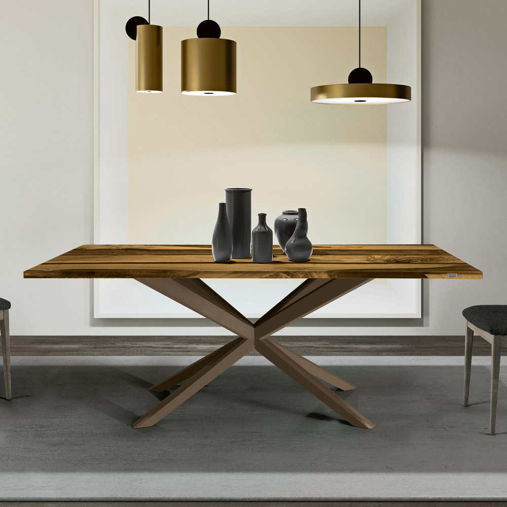 Rechthoekige eettafel met blad van hout en hars, gemaakt in Italië