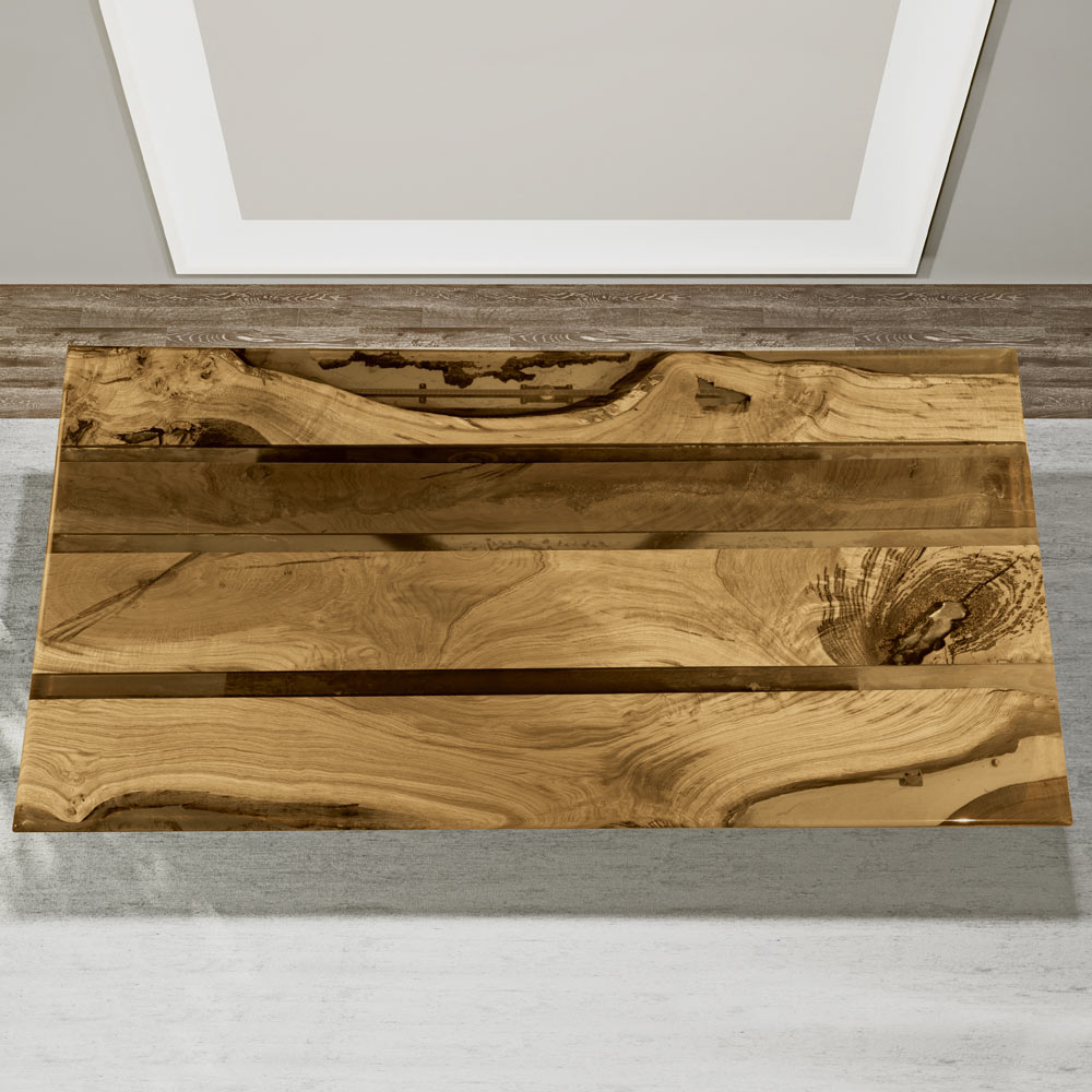 met hars gecoat landelijk geknoopt eikenhouten blad en een