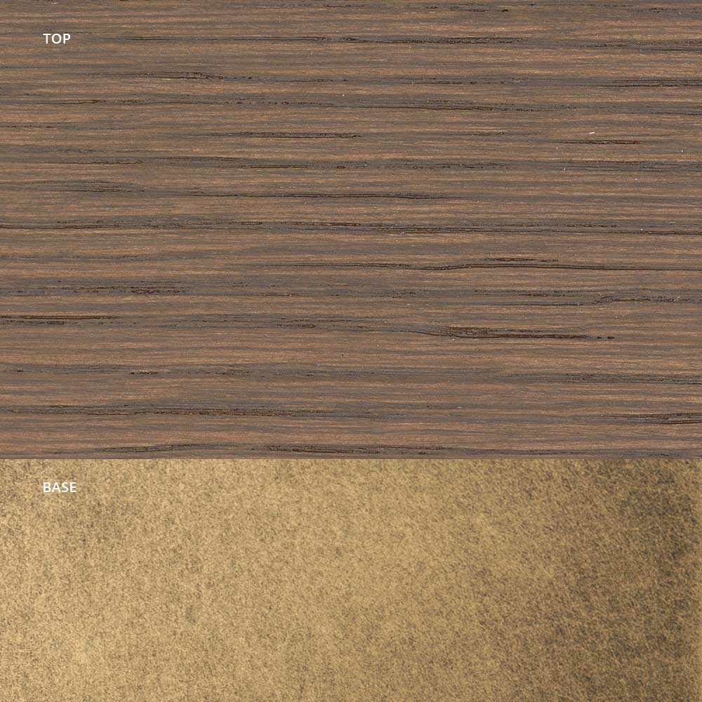 Tafel in geknoopt eikenhout en blad en onderstel verrijkt met metalen onderdelen Made in Italy.