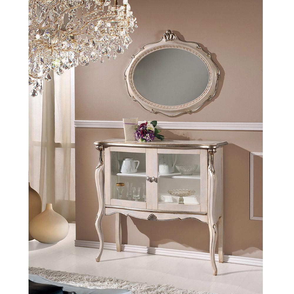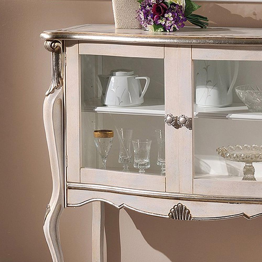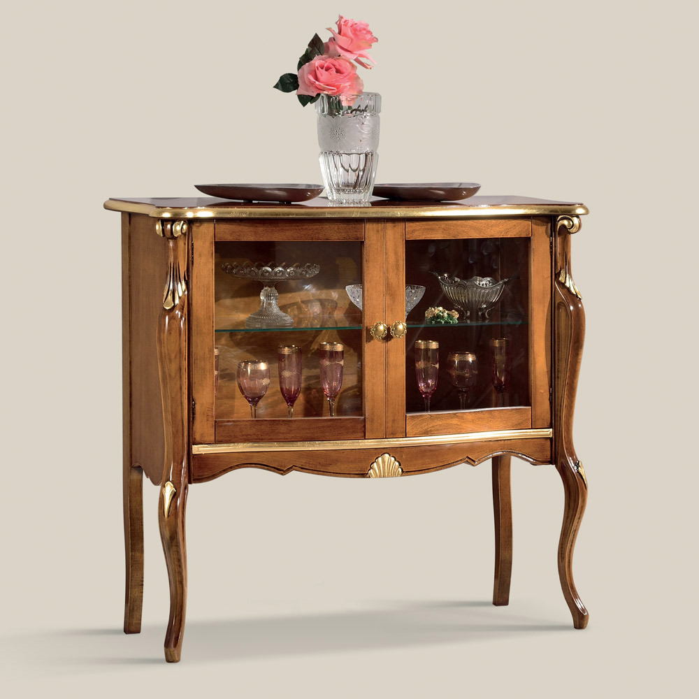 woonkamer vitrinekast gemaakt van hout en compleet met 2 elegante glazen deuren, ideaal om uw woonkamer te decoreren met tijdloze elegantie. Verkrijgbaar in twee varianten: