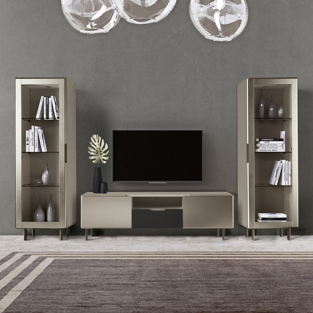 Woonkamervitrine in MDF-nikkelafwerking Made in Italy
