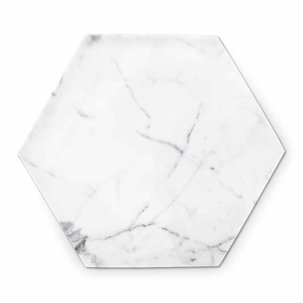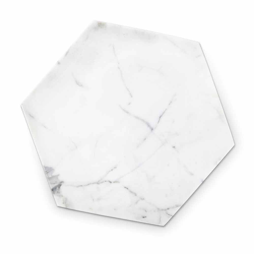 Zeshoekige designplaat in wit Carrara-marmer Made in Italy.