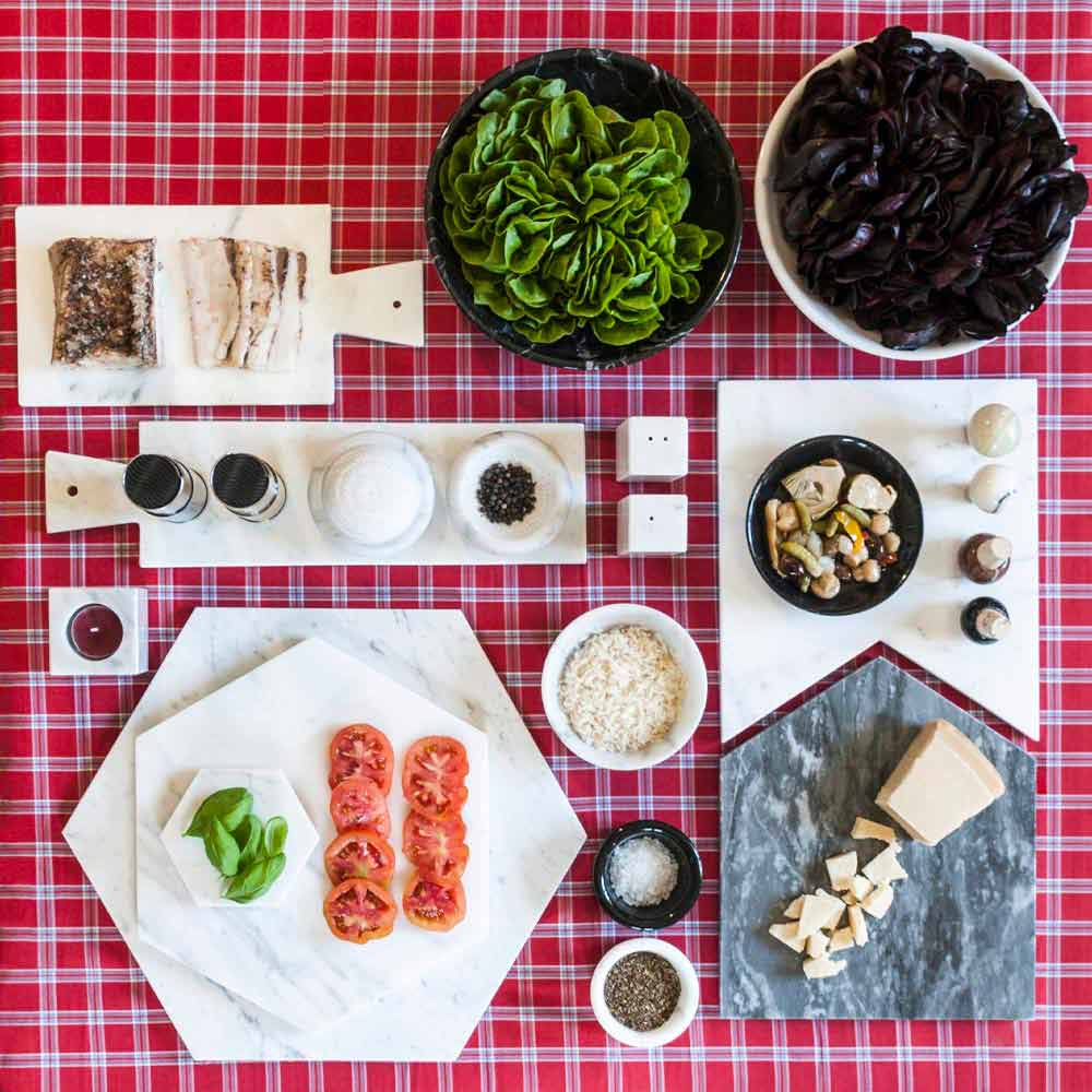 marmer in twee afwerkingen die dankzij het innovatieve ontwerp ook kan worden gebruikt als dienblad of snijplank.