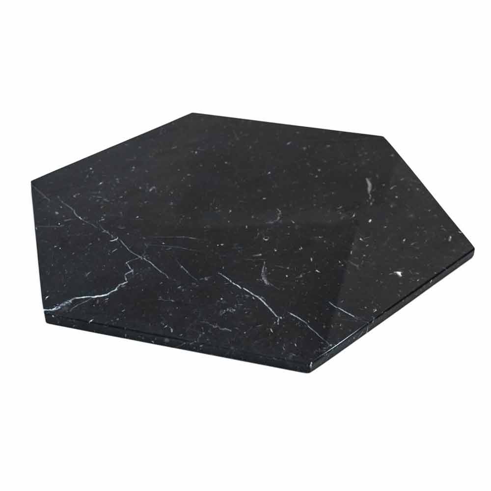 Zeshoekig design serveerbord in wit of zwart marmer, made in Italy.