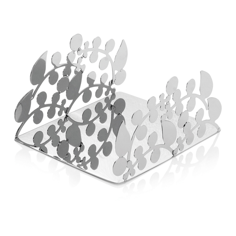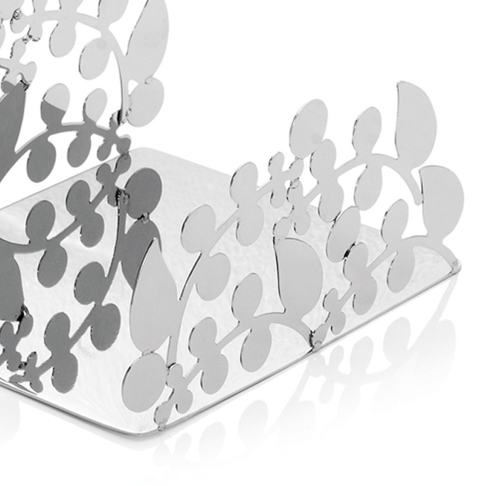 Deze servethouder heeft een verfijnd en elegant rechthoekig ontwerp , volledig gemaakt van zilver metaal met naturalistische versieringen.