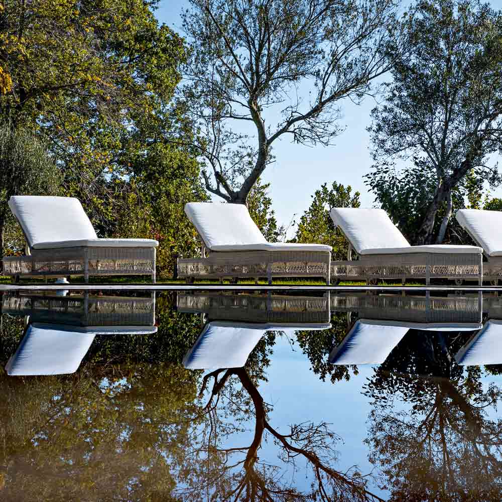 De weefstijl is verfijnd en delicaat en samen met de zeer hoge kwaliteit van de materialen en de beslissende vormen maakt dit ligbed perfect voor het inrichten van interieurs en exterieurs, zowel privé als contractomgevingen zoals terrassen, veranda's, tuinen maar ze vinden ook een perfecte locatie bij het zwembad.