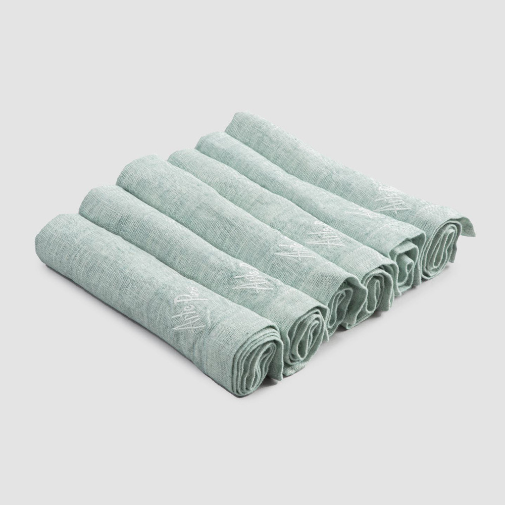Gekleurde zware linnen servetten met omgeslagen rand, 6 luxe stuks gemaakt in Italië.