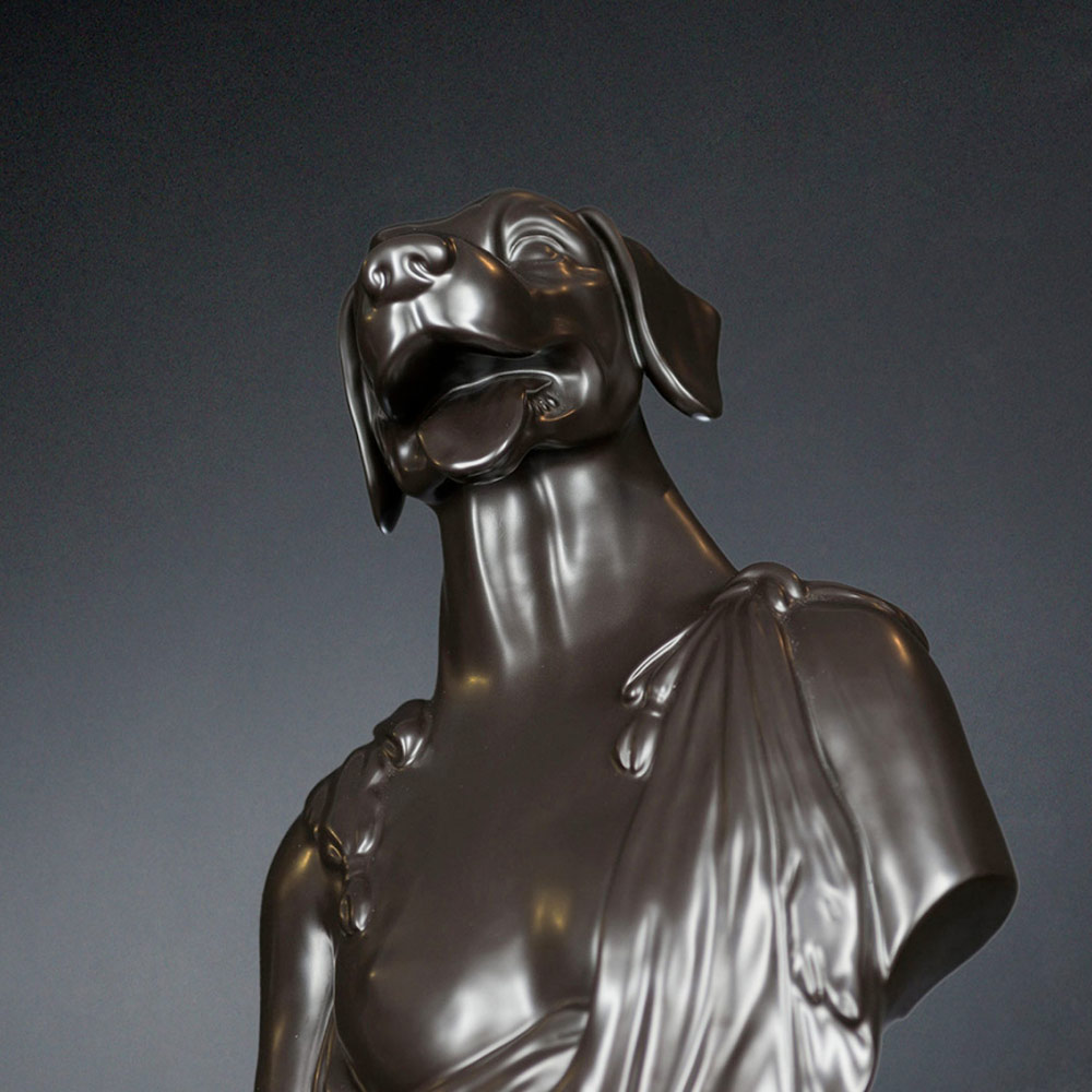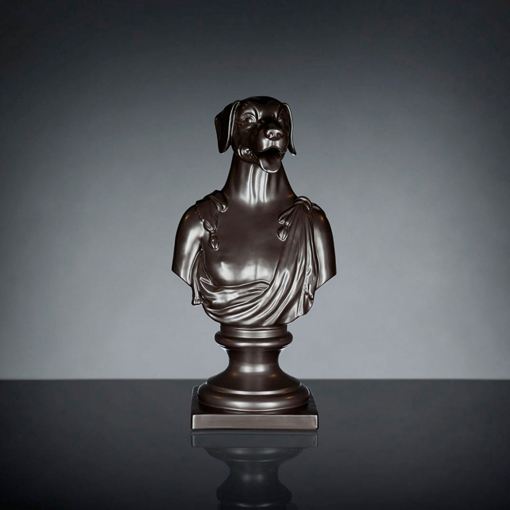 Decoratieve keramische sculptuur handgemaakt door Italiaanse ambachtslieden met afbeelding van Argos, de hond van Ulysses.