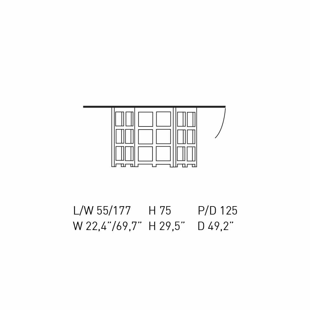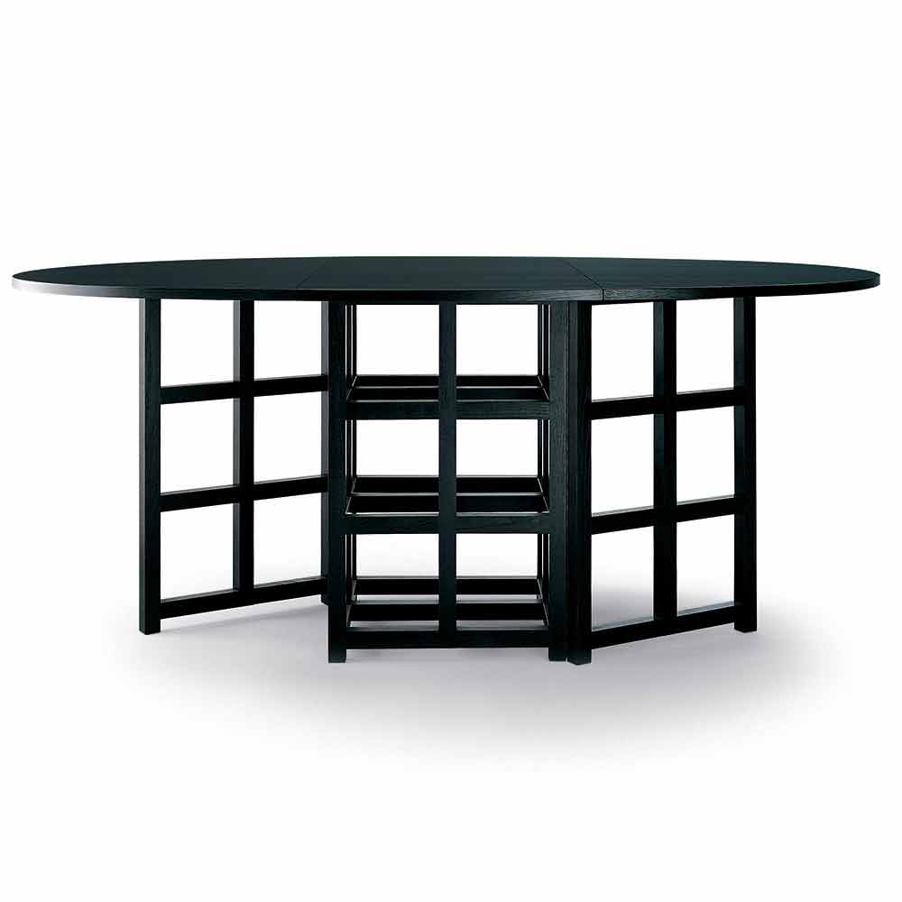 Eettafel volledig gemaakt in Italië met blad en structuur in zwart geverfd essenhout. Een meubel met een originele stijl zij het in zijn extreme eenvoud. De esthetiek wordt gekenmerkt en uniek gemaakt door het bijzondere onderstel dat is ontstaan uit geometrische vormen en kenmerken die de tafel een gevoel van verfijning en innovatie geven voor een exclusief resultaat met een sterke visuele impact . Zijn eigenaardigheid wordt weergegeven door het verstelbare blad aan beide zijden waarmee u een tafel met kleinere afmetingen kunt krijgen, ideaal voor degenen die geen grote kamers beschikbaar hebben, maar in ieder geval voldoende oppervlak nodig hebben om vrienden en familieleden te huisvesten voor heerlijke lunches en diners met vrienden.