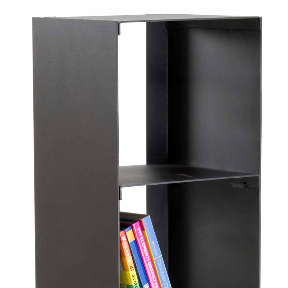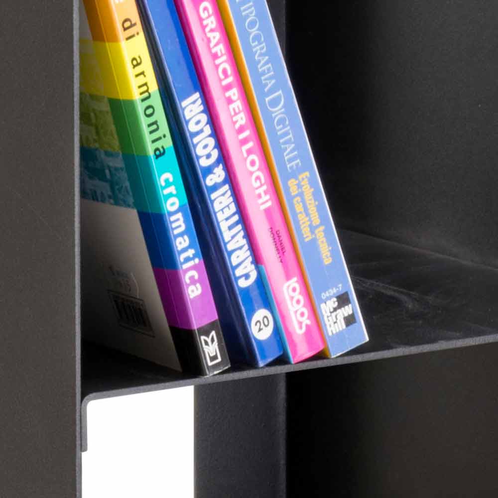 Houten houder voor binnenhout van zwart staal met planken, modern design gemaakt in Italië.